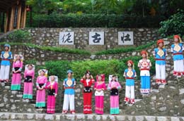 9月17日,广西宜州下枧河景区的“刘三姐”“阿牛哥”在迎接游客。