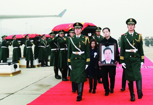 首都迎接海地地震遇难中国维和警察灵柩回国