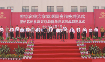 当他说此话的时候,脸上挂着自信温和的笑容,坚毅的眼神使人由衷相信,眼前这位在商海中打拼二十余年的汉子已经找到了农业大市场发展的真谛和办法。在前来华东农业大市场观摩的江苏省、市、区领导和来宾面前,这位铁骨铮铮的要强汉子,向领导及进驻市场的商户表态,“我要么不做,要做就做苏北第一、全国知名”。