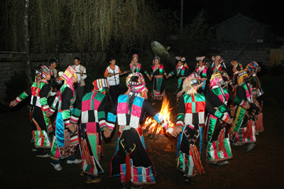 节日里活动内容丰富多彩,除夕之夜,老人以酒、肉、粑粑祭祀天地祖先神灵,为感谢耕牛一年劳作,家犬给人类带来谷种,先给它们品尝一点年节食品。人们身着节日盛装,来到选定的场址,聚集在一起吹笙、笛,弹篾弦、三弦等乐器,载歌载舞,通宵达旦,欢庆佳节。