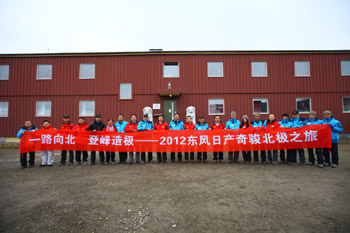 “一路向北,登峰造极”奇骏北极科考活动摄制组在北极黄河站留影。 |