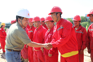 中石油管道局穿越公司党委书记崔华慰问员工。 |