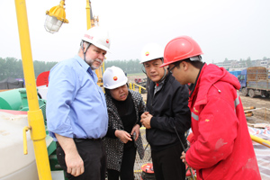 欧洲钻井承包商协会技术总监、卢卡斯公司总经理克鲁斯到长江定向钻穿越现场调研。 |