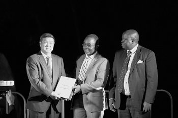 9月23日,全国政协常委、中国亿利资源集团董事长王文彪在纳米比亚首都温得和克召开的联合国防治荒漠化公约第十一次缔约方大会期间,荣获联合国颁发的首届“全球治沙领导者奖”。联合国防治荒漠化公约组织执行秘书长吕克·尼亚卡贾为王文彪颁发奖牌。