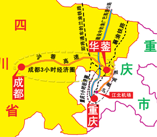 四川省华蓥市位于“红岩精神”发源地之一的华蓥山中段西麓,紧邻重庆,襄渝铁路纵贯全境,并与兰渝铁路在此交汇,沪蓉高速横穿东西,正在修建的巴广渝高速纵贯南北,穿越华蓥全境的S203线升格为国道已纳入规划,是川渝合作的“桥头堡”,已融入“重庆1小时经济圈”、“成都3小时经济圈”;是中国优秀旅游城市、全国第二批资源枯竭转型试点市、西部最具投资潜力百强县、四川省首批扩权强县试点市。