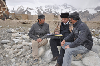 新疆塔县支行信贷人员为农牧民讲解农户贷款。 |