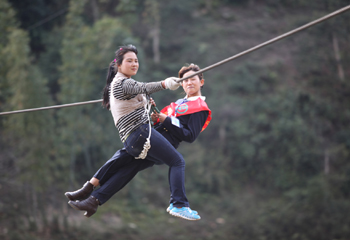 农行云南福贡支行员工溜索过江办理“惠农通”业务。梁志强/摄 |