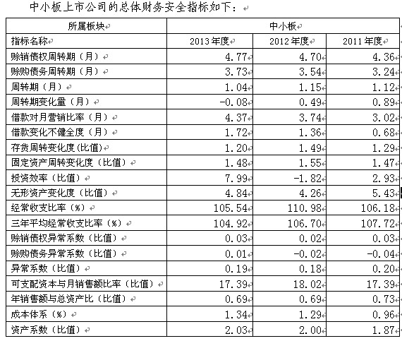总体上中小板各项财务安全指标中异常指标较少,多数指标正常,整体优于主板上市公司。但是,一些指标存在恶化趋势。