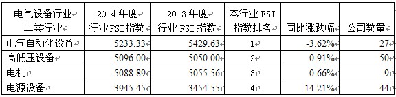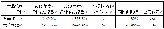 2014年,家用电器行业FSI指数值排在所有25个一类行业的第1位,整体行业财务安全状况堪称优秀。同时,在大多数行业财务安全状况下降的情况下,FSI行业指数同比保持了微幅上涨。