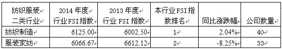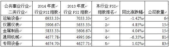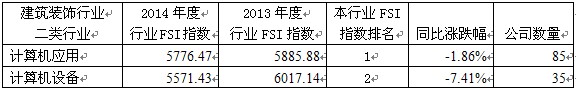 房地产开发行业2014年FSI指数低,且指数同比下降,下降幅度为-14.93%。