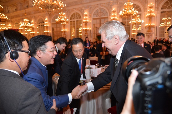 中国华信总裁陈秋途与捷克总统泽曼亲切握手