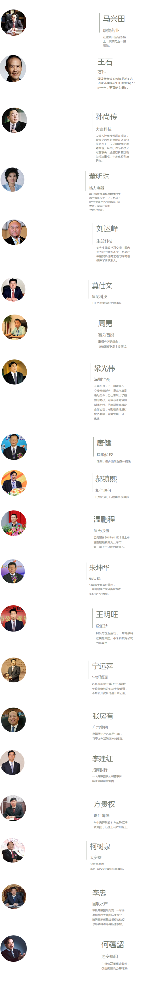 恰逢周一是2016年第一个熔断日,推出广东省2015年“最忙董事长TOP20”,或可为股民们提供风向标。