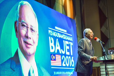图为当日,纳吉布在普特拉贾亚举行的会议上致辞。