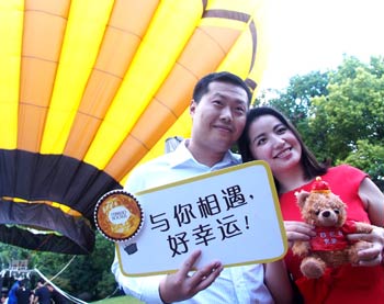 8月9日,一对情侣在上海黄浦江畔准备乘坐热气球。当日是七月初七,我国传统的七夕节,“优步”在上海推出“一键呼叫热气球”活动,旨在通过个性化服务,为消费者创造生活中的惊喜。记者 陈飞/摄 |