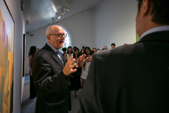 桑德罗·基亚、恩佐·库基、弗朗切斯科·克莱门特、米莫·帕拉迪诺和尼古拉·德·马里亚是意大利超前卫艺术团体的主要人物,意大利艺术批评家阿奇莱·博尼托·奥利瓦的艺术理论构成了他们的美学导向。在黄建华的收藏系列中,包括了著名超前卫艺术家的许多重要作品。桑德罗·基亚重新诠释了意大利文艺复兴、风格主义和巴洛克艺术的构图模式和象征场景,给古典的视觉比喻注入崭新的、激进的、隐喻的或存在的意义。恩佐·库基和弗朗切斯科·克莱门特则强调身份的多重性、个体一致的危机以及幻觉和病态幻想带来的恐慌叙事。桑德罗·基亚那谜一般、暗示的场景,混乱的人物,促发一种几近幻觉的氛围。在这种氛围里面,某种强力的、不可控制的、非理性的力量决定着人物的运动、姿势和方向。这位艺术家没有提供剧本指引,而是将这些人体都固定在永久的紧绷状态之中。在无形力量中挣扎、随时可能爆发、永久的不稳定、永恒不止的变形,这一切,创造出朦胧的英雄主义。