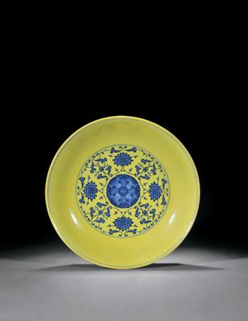 清乾隆 黄地青花缠枝莲纹大盘 成交价:RMB 414,000 |