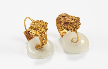 清中期 金质配玉耳环一对 总重15.8g |