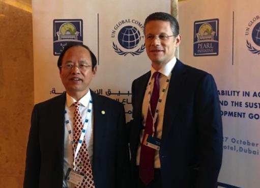 2016年10月24-27日,应联合国全球契约组织邀请,受中国华信董事会主席叶简明委托,董事会委员、工会主席、国际中心主任蒋春余率中国华信代表团在阿联酋迪拜出席联合国全球契约组织峰会。