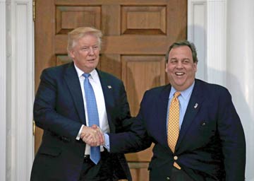 11月20日,美国当选总统特朗普走访了新泽西州贝德明斯特的川普国际高尔夫俱乐部。图为特朗普与新泽西州州长克里斯·克里斯蒂(右)握手。新华社/西霸 |
