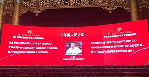 12月19日,以“寻找经济界'工匠精神'的践行者”为主题的“2016中国经济高峰论坛暨第十四届中国经济年度人物颁奖典礼”在北京举行。国务院原副总理吴桂贤、全国工商联原副主席沈建国、经济日报社原总编辑冯并、中国经济导报社长王平生、中国企业改革与发展研究会副会长李锦、国家发改委宏观经济管理编辑部主任宋承敏、中国经济人物证评活动组委会秘书长等出席,全国商界精英、行业代表逾500人参加会议。