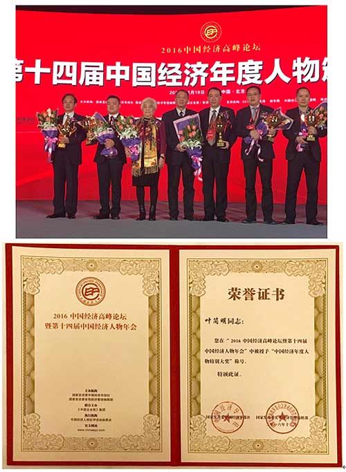 经过激烈的网络投票及专家评审,中国华信董事会叶简明主席荣获2016“中国经济年度人物特别大奖”。同时获此殊荣的还有华为公司创始人任正非、阿里巴巴董事局主席马云、北京银行党委书记兼董事长闫冰竹。另外还有10位知名企业家荣获“中国经济年度人物”。