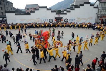 每年元宵前后,在河上镇,另一项国家级“非遗”项目“河上龙灯胜会”便会如约上演。这一始于南宋的“约定”据说是目前萧山延续时间最长的民俗活动,仪式程序主要包括开光大典、出灯、闹元宵、化灯等多个过程,当地村民们用这样的方式,祈求一年的风调雨顺。值得一提的是,龙灯全是本土老艺人们亲手扎制的,手工艺之精巧,令人赞叹。