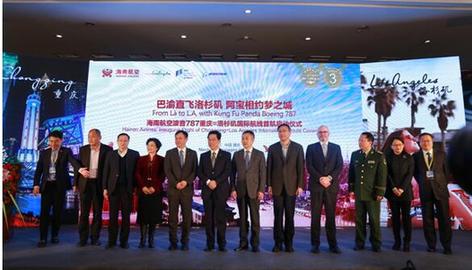 在重庆直飞洛杉矶的首航仪式上,海航总裁孙剑锋说,“15日,我们刚刚开通首条我国西南直飞洛杉矶的航线,从成都出发,14个小时直达洛杉矶,相对以往航线节省了3个多小时。六天后,海航又开启重庆直飞洛杉矶,大大满足了我国西南地区与整个北美通航的巨大需求,将为‘中西’至‘美西’之间的经贸文化、旅游方面交流提供新通路。“