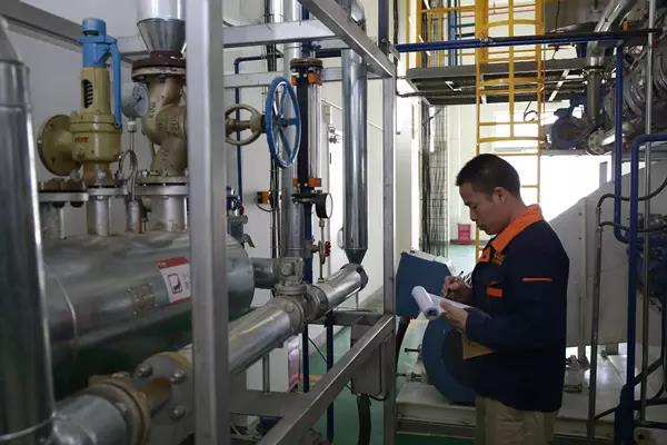 在距“科技城堡”几百米外,还有一个默默坚守岗位的“造血系统”——日本三浦蒸汽锅炉。据介绍,该款锅炉实现产气时间从传统的30分钟缩短为5分钟,极大缩短了整个流程的生产时间;同时,锅炉占地面积仅为传统锅炉的四分之一,占地面积大大减小。