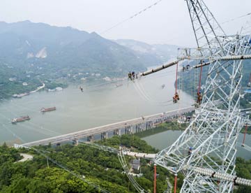 随着国网重庆市电力公司技术人员完成跨越嘉陵江的输电线路施工作业,500千伏川渝输电大通道顺利实现全线贯通。 |