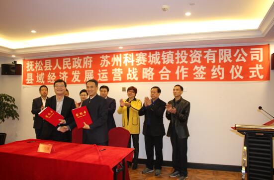 2017年10月19日下午,抚松县人民政府与苏州科赛城镇投资有限公司,北京金红融通投资股份有限公司进行座谈,经多次深入交流与考察,达成全面合作,并签订《县域经济发展运营战略合作协议》。科赛集团作为中国发展最早的城镇化建设运营公司,将会同多家金融机构形成投资联盟,对万良人参小镇、松江河林雪风光小镇、仙人桥温泉小镇、露水河矿泉小镇,泉阳森林绿色食品小镇等5个特色小镇,从规划到建设、从产业导入到运营进行全方位的战略性布局。对抚松县的全域经济发展战略进行科学化的设计与引导,并编制具体执行方案。