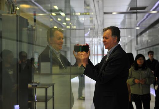 图为马歇尔教授参观江中集团无人化操作中药液体生产线
