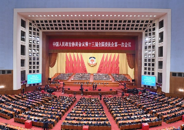 3月14日,全国政协十三届一次会议在北京人民大会堂举行第四次全体会议,选举政协第十三届全国委员会主席、副主席、秘书长和常务委员。新华社记者 燕雁 摄