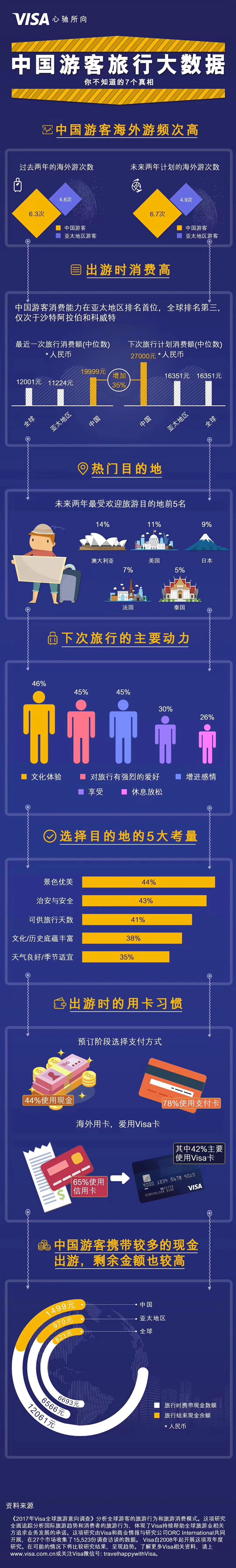 Visa和商业情报与研究公司ORC International近日发布《2017年Visa全球旅游意向调查》,下图将揭示中国游客旅行大数据的7个真相。
