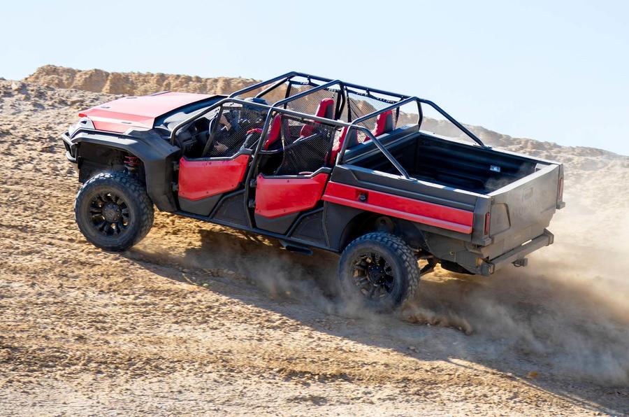 Rugged Open Air以品牌Ridgeline皮卡和先锋1000 SxS多用途车为基础进行打造,其另一大特色是采用思域Type R车型的防水座椅、定制货厢和尾门。车内大量采用防水和耐用材料,还配有RAM手机支架,进一步提升了越野车的实用性,还有其它显著外部特征,如防滑板和防滚架等,则表明了车辆的用途。