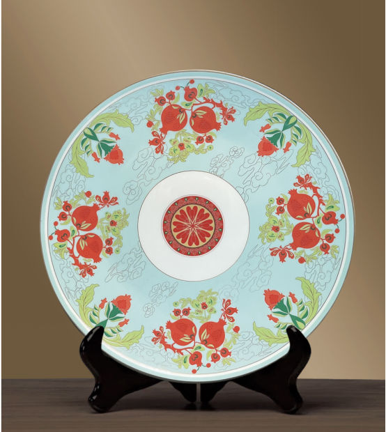 近日,文创品牌“枣城有礼”的首款产品“石榴花开艺术摆盘”,历经数月打磨,终于亮相。负责人山东京玺公司总经理秦立峰表示,石榴花开艺术摆盘,创意以枣庄市花“石榴”为设计元素,结合中国传统礼器之一的“玉璧”造型结构为型,盘中融入了从石榴开花绽放到果实成熟的整个生长过程,进行艺术化创作,盘中主要图纹以浮雕工艺和烧制难度较高的雾金结合亮金工艺制作,四周以传统吉祥云纹环绕,金色线条灵动典雅。作品整套制作流程,以骨质瓷为原材经多道手工匠造及煅烧工艺而成,具有艺术观赏价值及收藏价值。