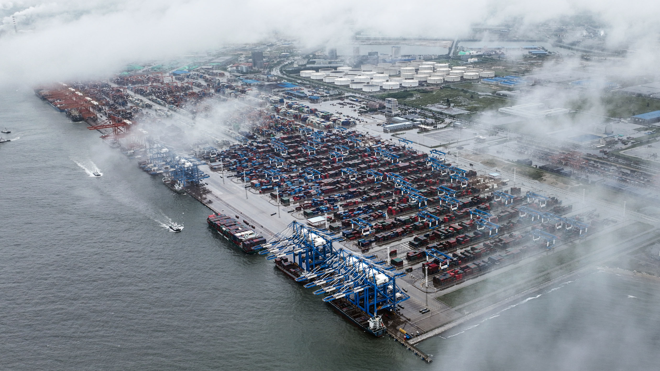 繁忙的钦州港码头(无人机照片)。截至8月2日,今年西部陆海新通道铁海联运班列运输货物突破50万标箱,为历史同期最高水平。 新华社记者 张爱林 摄