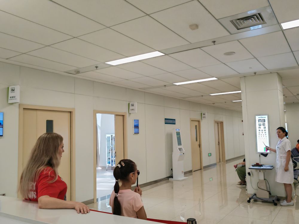 除了牙科,来看眼科的俄罗斯人也不少。在黑河市第一人民医院,一个俄罗斯孩子正在医护人员的指导下,使用视力测试表测试视力。“这里的医疗条件更好,设备更先进,我们此行是来复查视力的。”孩子母亲说。