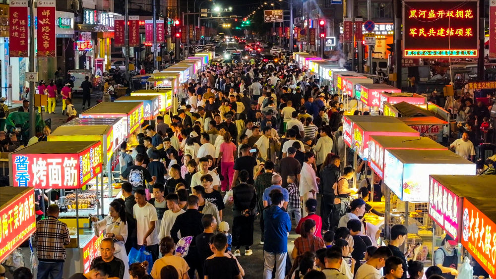 去年,黑河的“国际化大早市”火爆互联网,吸引众多游客专程来黑河与俄罗斯邻居一起“逛早市”;今年,整饬一新的黑河“国际大夜市”在盛夏时节一起“点燃”中俄跨境游,国内外游客纷纷来此感受边城夜晚的“人间烟火气”。