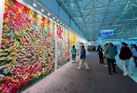 依托青海丰富的羊毛资源,圣源地毯集团有限公司继承青海藏毯的精湛手工艺,采用环保材料和先进技术,严格控制生产消耗和废物排放,培育藏毯品牌,探索开展工业旅游、研学旅游。图为地毯产品展示。褚多锋 摄