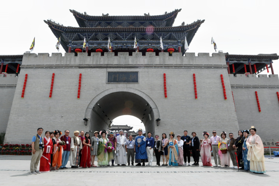 近年来,西宁市发挥资源禀赋和区域优势,营建绿色有机农畜产品输出地中心城市,促进农牧文旅融合发展。图为7月18日,“从绿色有机看西宁优势”媒体调研活动成员与丹噶尔古城演职人员合影。西宁市湟源县委宣传部供图