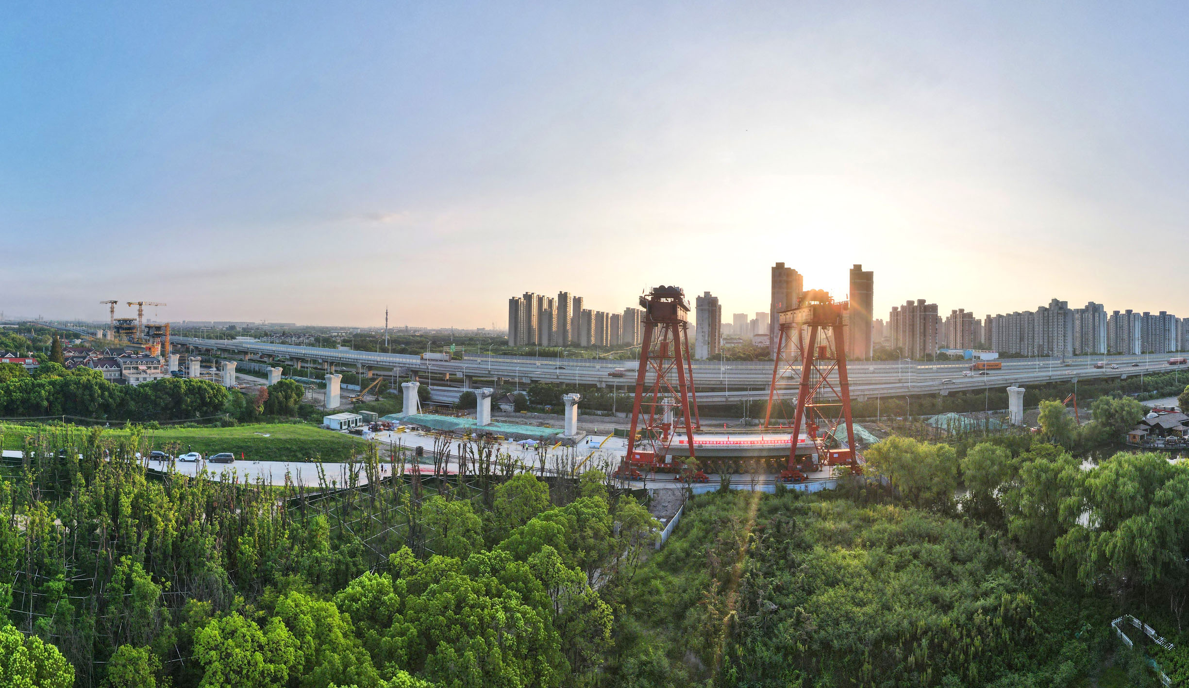 8月26日,由中铁四局承建的沪渝蓉高铁上海段首榀箱梁架设完成,标志着该段正式进入桥梁架设阶段。上海段是沪渝蓉高铁东段线路的重要组成部分,沪渝蓉高铁东段线路项目建成后,对于服务长江经济带协同发展具有重要意义。图为当日拍摄的施工现场(无人机照片)。