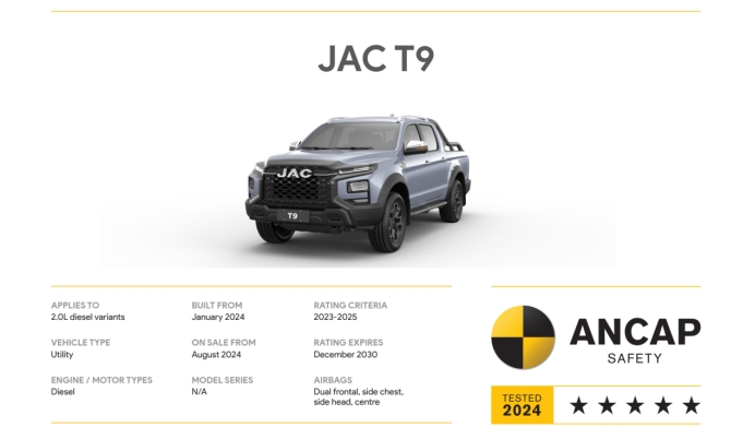 近日,澳大利亚独立汽车安全机构ANCAP SAFETY为江淮汽车旗下新款JAC T9双排座皮卡授予了五星安全评级。
