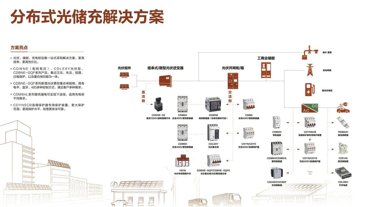 02.德力西电气的分布式光储充解决方案,广泛适用于工商业建筑、民用建筑以及农光互补、车棚等多种场景,为客户提供了一站式交直流开关元件服务,助力实现绿色能源效益提升和可持续发展。