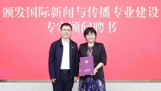 仪式上,李向阳、学校有关单位负责人为与会学界、业界专家颁发了国际新闻与传播专业建设专家顾问聘书。