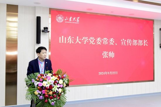 张帅在讲话中代表学校党委指出,山东大学积极建设和发展国际新闻与传播专业,努力培养专业化人才,这既是顺应国际主流发展趋势、面向国家重大战略需求的重要举措,又是探索中国特色世界一流大学建设新路、构建卓越引领的高质量高等教育体系的具体实践。对于国际新闻与传播专业建设,张帅强调,一是要提高政治站位,积极回应国际传播的国家之需;二是要加强学科建设,全面展现国际传播的山大之为;三是要强化交叉融合,主动担负起国际传播的育人之责。山东大学国际新闻与传播专业的未来走向,一定是坚持以育人为使命,交叉融合、协同育人的发展进路。下一步要依托学校深化同类学科融合发展的改革机遇,在校内探索山东大学国际新闻与传播专业相关领域的教学学术联合体的建设;要与校外党政宣传文化领域职能部门、媒体机构一起,探索人才共有、成本共担、成果共享的长效共建体制机制,形成国际传播的育人合力。