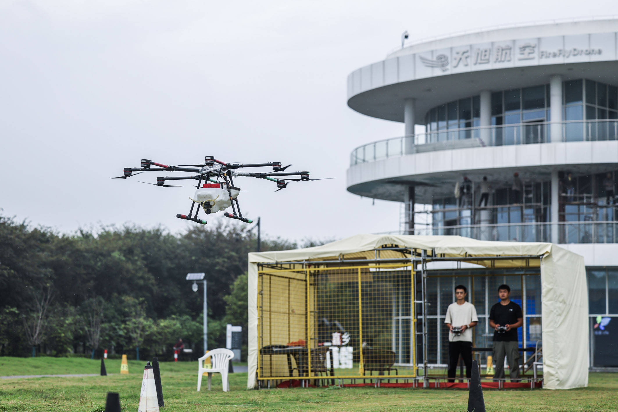 10月16日,在南湖区凤桥镇永红村的天旭航空培训基地内,无人机爱好者测试无人机。近年来,浙江省嘉兴市南湖区凤桥镇聚焦“低空经济”持续赋能乡村振兴“加速起飞”,不断“解锁”农业生产、文旅融合、乡村治理的全新场景,推进低空经济发展,持续培育乡村发展新业态,助力乡村振兴。
