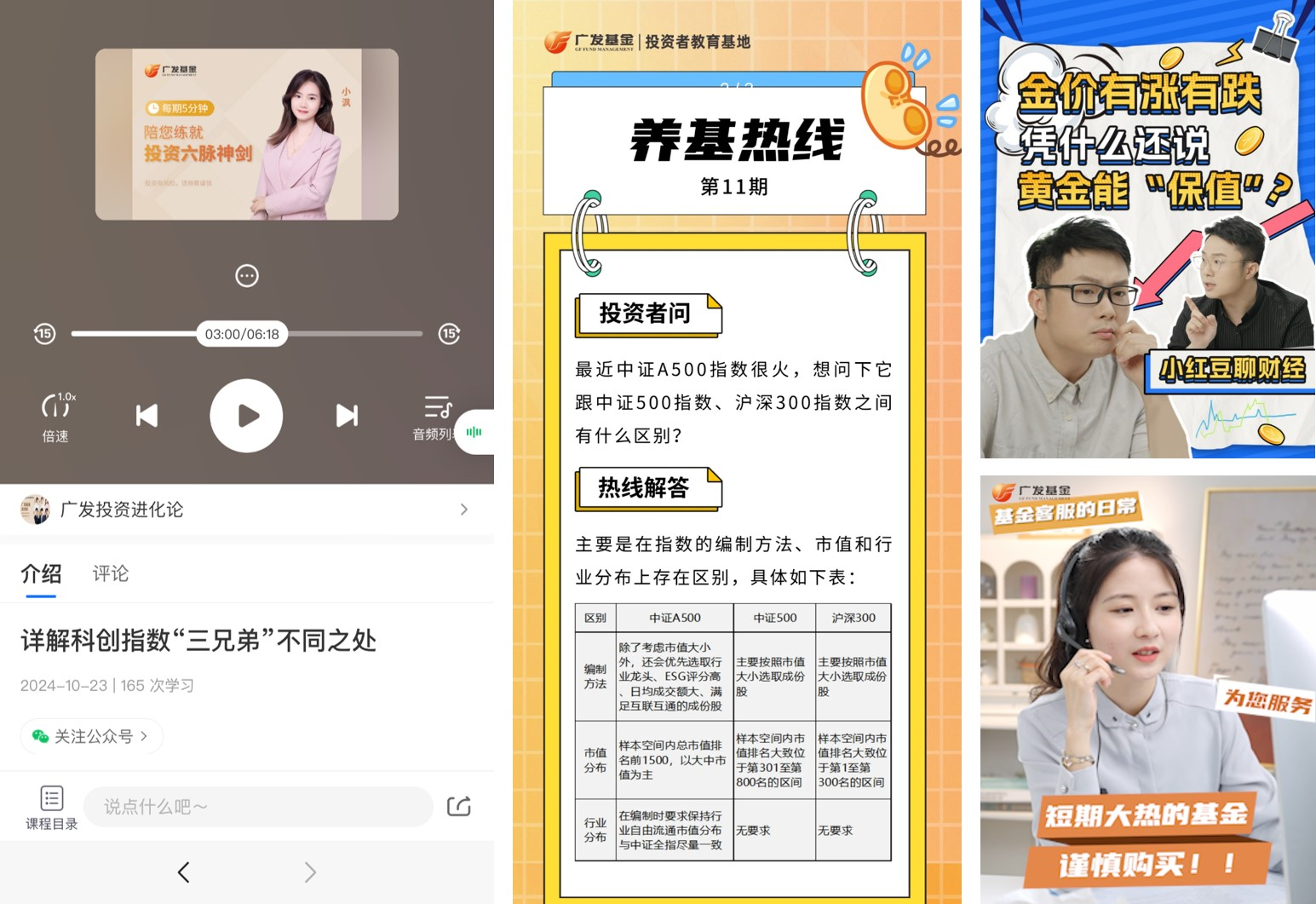 活动期间,广发基金借助科普文章、专栏、漫画、趣味短视频、音频课程、长图文等丰富多样的形式开展线上宣传。