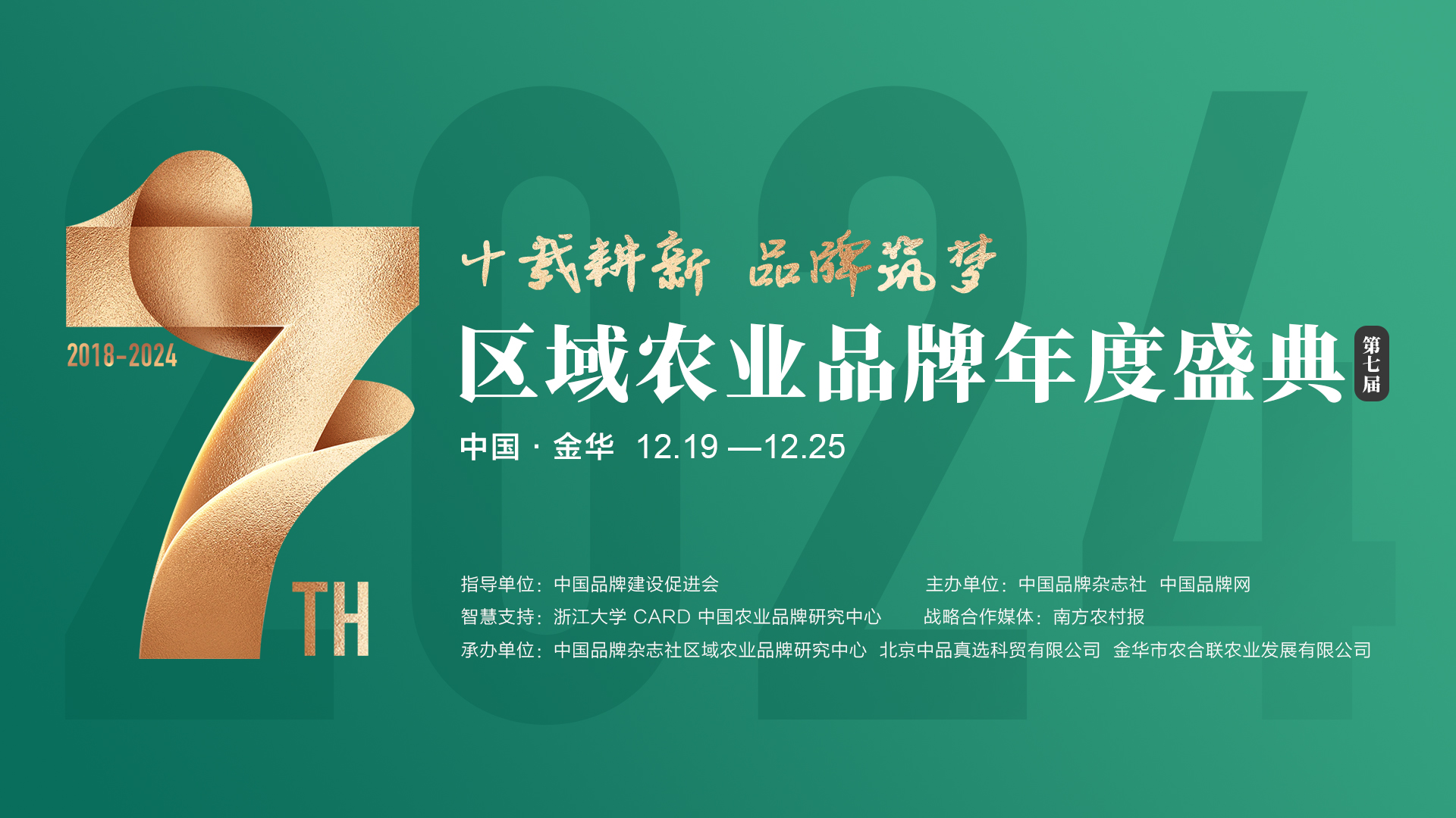 12月19日至25日,以“十载耕新 品牌筑梦”为主题的“金农好好·2024区域农业品牌年度盛典”系列活动将在浙江省金华市举办。本活动由中国品牌杂志、中国品牌网主办,中国品牌杂志社区域农业品牌研究中心、北京中品真选科贸有限公司、金华市农合联农业发展有限公司联合承办。