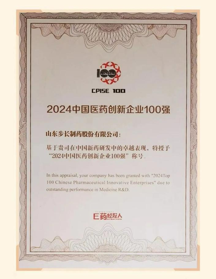 近日,由中国医药企业管理协会、中国医药生物技术协会、四川省医药行业协会、成都天府国际生物城管委会主办的第十六届中国医药企业家科学家投资家大会在成都举行。会议揭晓了“2024中国医药创新企业100强”(简称“创新100强”)榜单,步长制药荣列榜单。