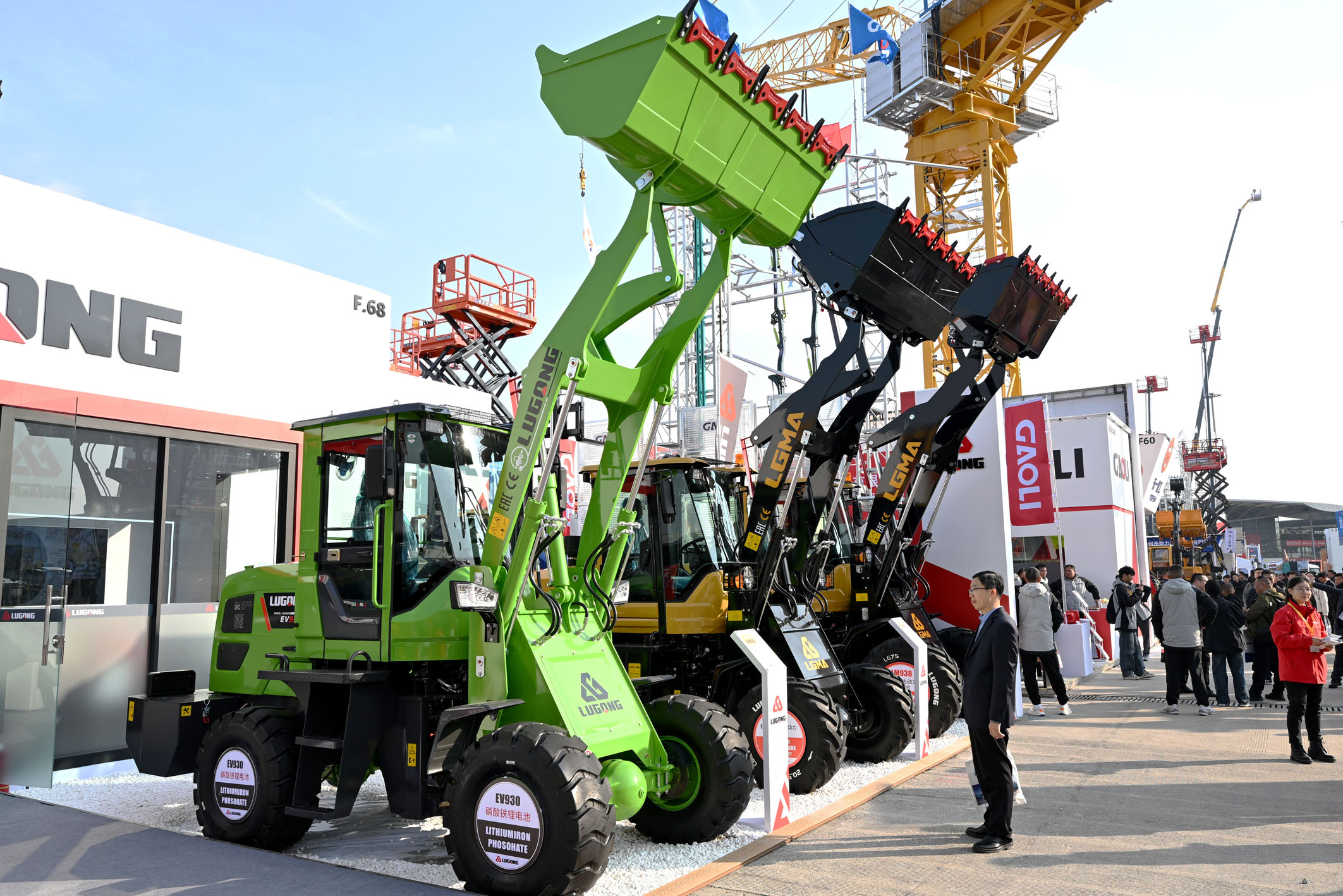 11月26日至29日,上海国际工程机械、建材机械、矿山机械、工程车辆及设备博览会在上海新国际博览中心举行。中联重科、浙江鼎力、卡特彼勒等国内外知名机械企业携硬核机械产品亮相。图为参展者在鲁工展区前驻足观看展品。